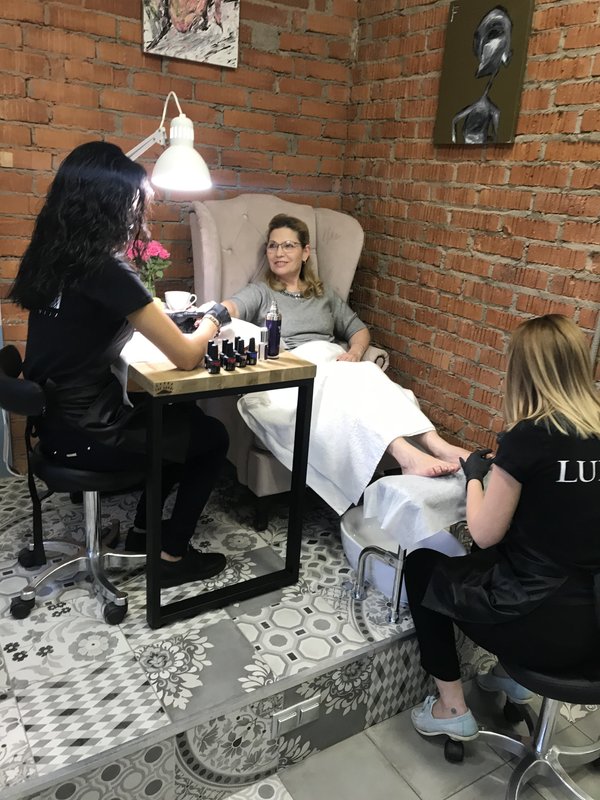 В салоне красиво, аккуратно, чисто, администраторы предложили кофе и чай. В последний раз была на маникюр и педикюре, все выполнено аккуратно, мастер Евгения - молодец! Она хорошо обработала ногти на руках и ногах. На ногах сделала покрытие, лак отлично держится. Для меня было важно, чтобы мастер учла особенности строения моего тела и сделала все аккуратно.